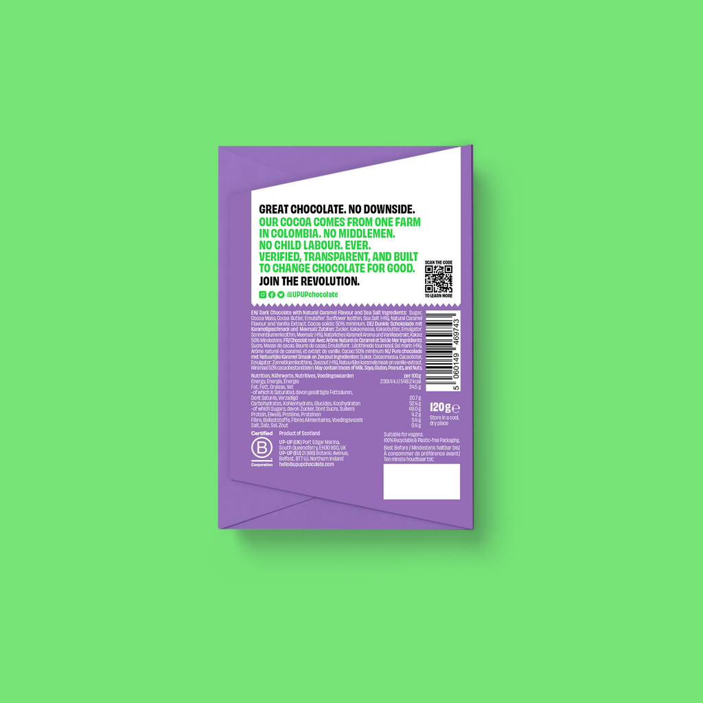Get ready to fall in love with the our Dark Caramel Chocolate Bar. Crafted from premium Single Estate cocoa beans grown in Colombia’s Necoclí region. With 50% cacao, this bar strikes the ideal balance of rich, smooth chocolate, indulgent caramel notes, and a pinch of salt. The nutty, roasted hazelnut flavours and a subtle fruity-citrus finish make every bite unforgettable.
